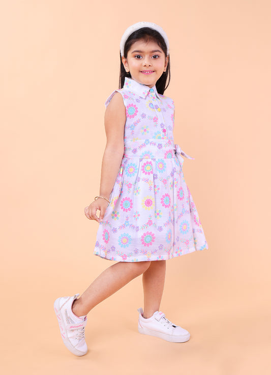 Pastel Bloom Sleeveless Shirt Dress 🌸