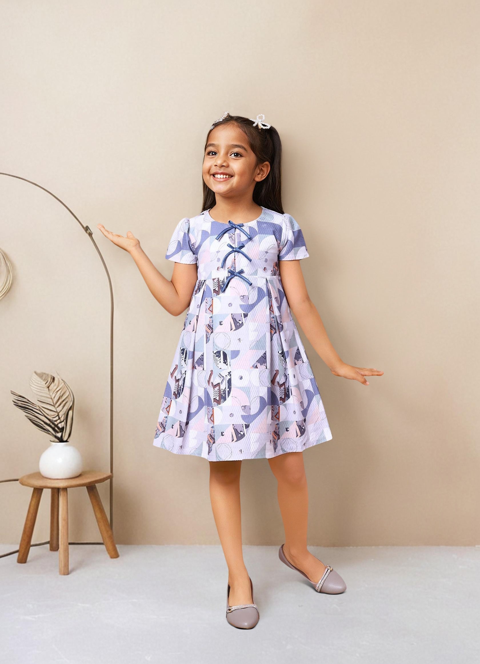 A beautiful dress with great print, round neck, zip closure, and a back tie, perfect for any occasion.