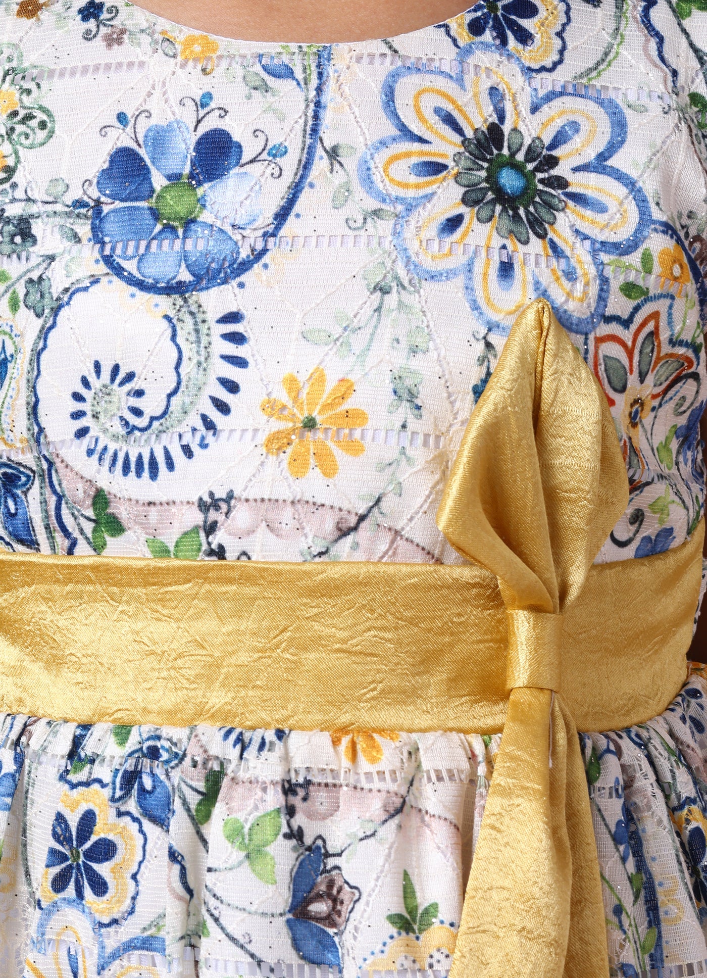 A beautiful dress with great print, round neck, zip closure, and a back tie, perfect for any occasion.