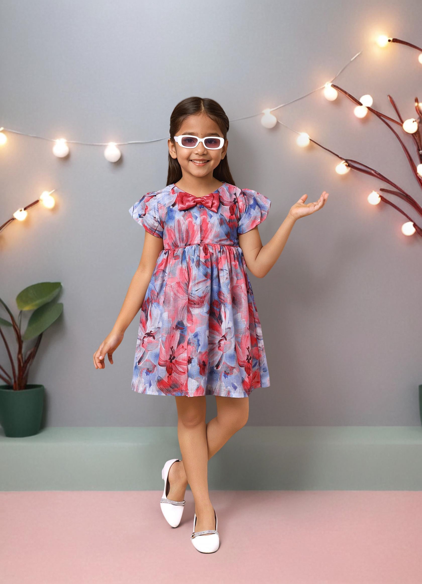 A beautiful dress with great print, round neck, zip closure, and a back tie, perfect for any occasion.
